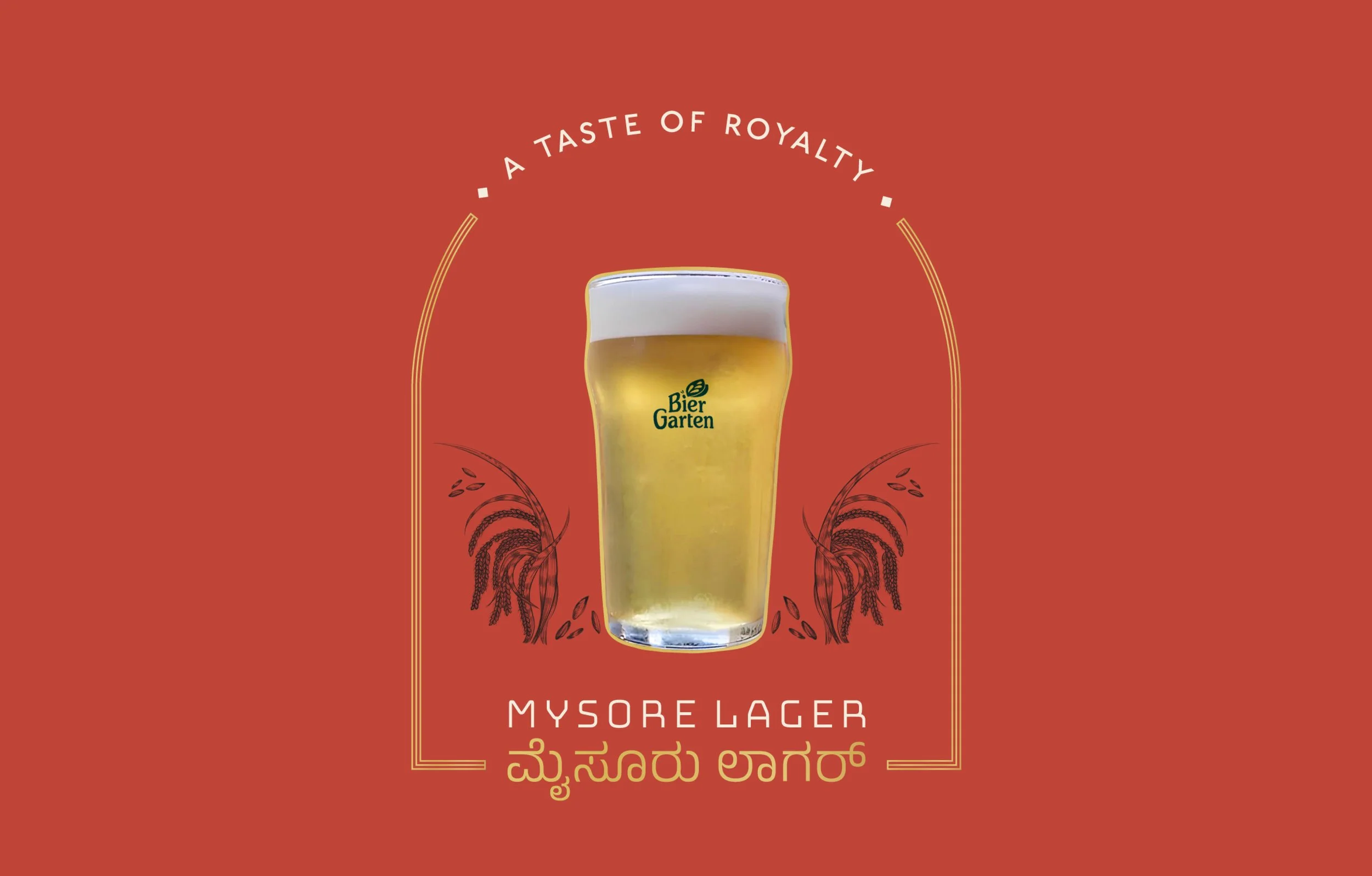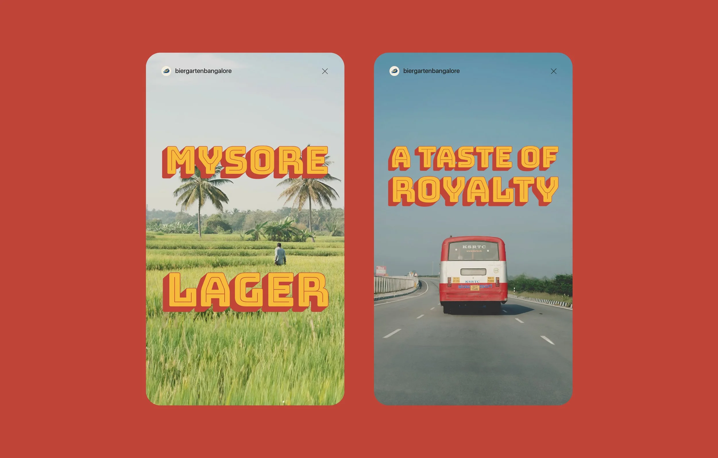 Every year, Biergarten Brewery & Kitchen celebrates the Karnataka Food Festival by incorporating ingredients rooted in Kannada food culture. For 2024, a trip to Mysore led us to Rajamudi, a red rice once favoured by royalty, which became the inspiration for crafting a special Mysore Lager for the festival. The visual language draws from Mysore’s royal heritage, blending the vibrancy of palace interiors, vintage Kannada film posters, and old postal stamps into a lively colour palette that echoes both royal splendour and the state flag. Expressing this cultural blend, we used Bungee, the brand’s primary display typeface, and anchored this in local context with Anek Kannada, for its semi-rounded, contemporary interpretation of the Kannada script. The softness and rhythmic curves of Anek Kannada offer a striking balance to Bungee’s rigid, modular forms, creating a dynamic typographic interplay across headlines, labels, and motion assets. P22 Underground is used as the supporting typeface, providing clean, legible structure for body copy and functional text. The videography extends this typographic and visual sensibility into motion. Inspired by 1980s Sandalwood cinema, it features bold, stacked type treatments set against scenes from Mysore’s royalty.