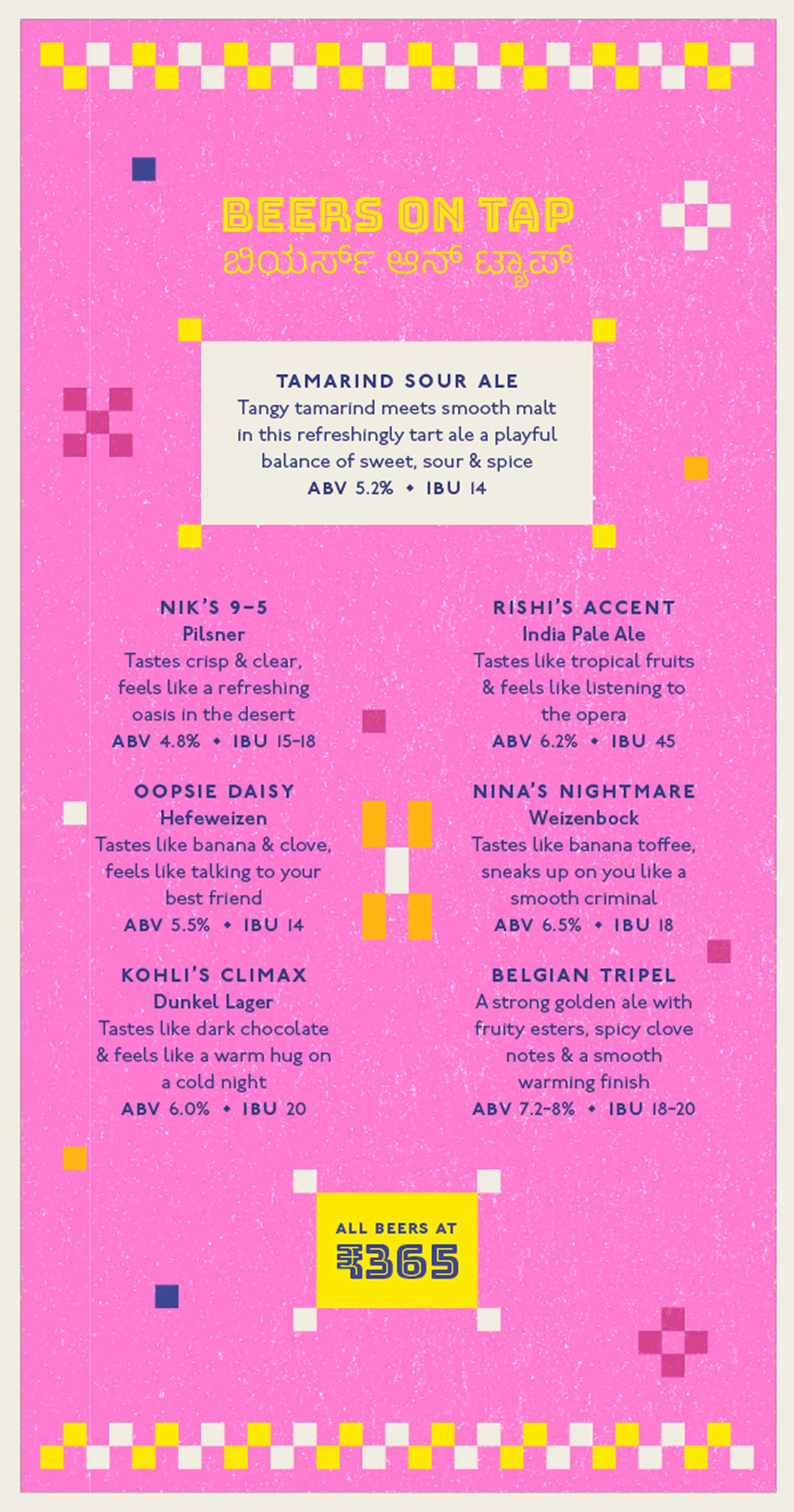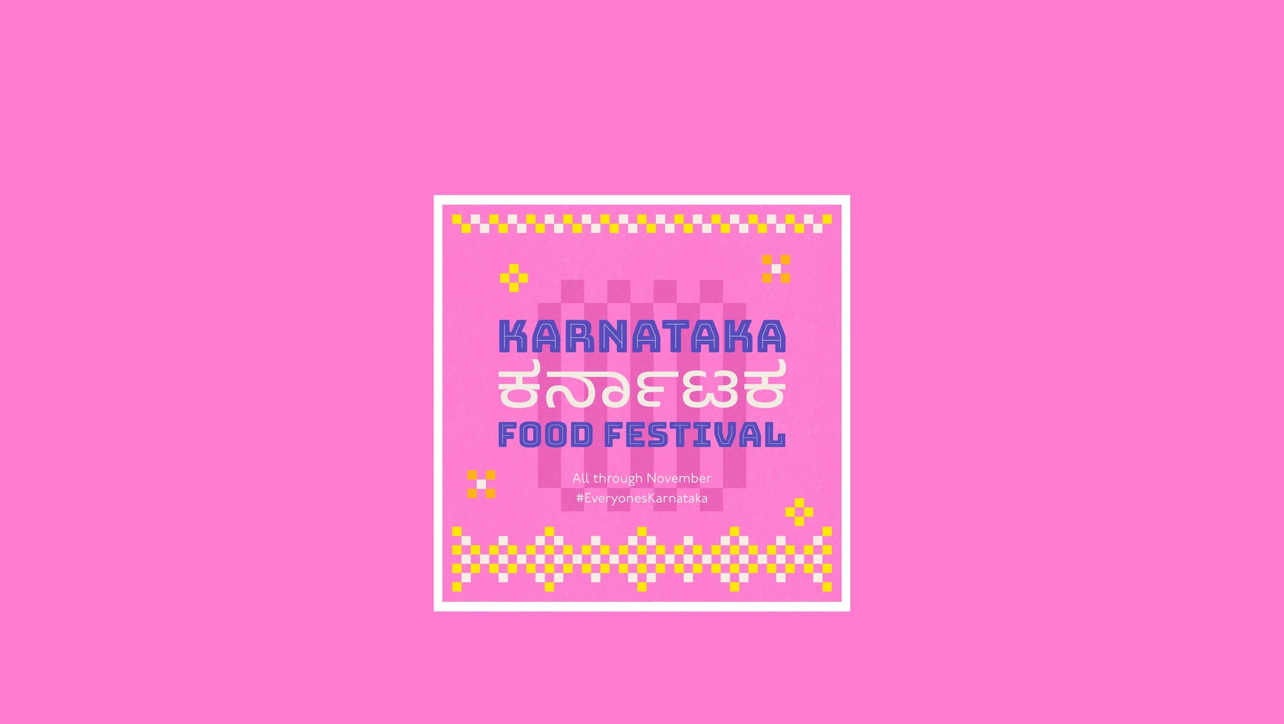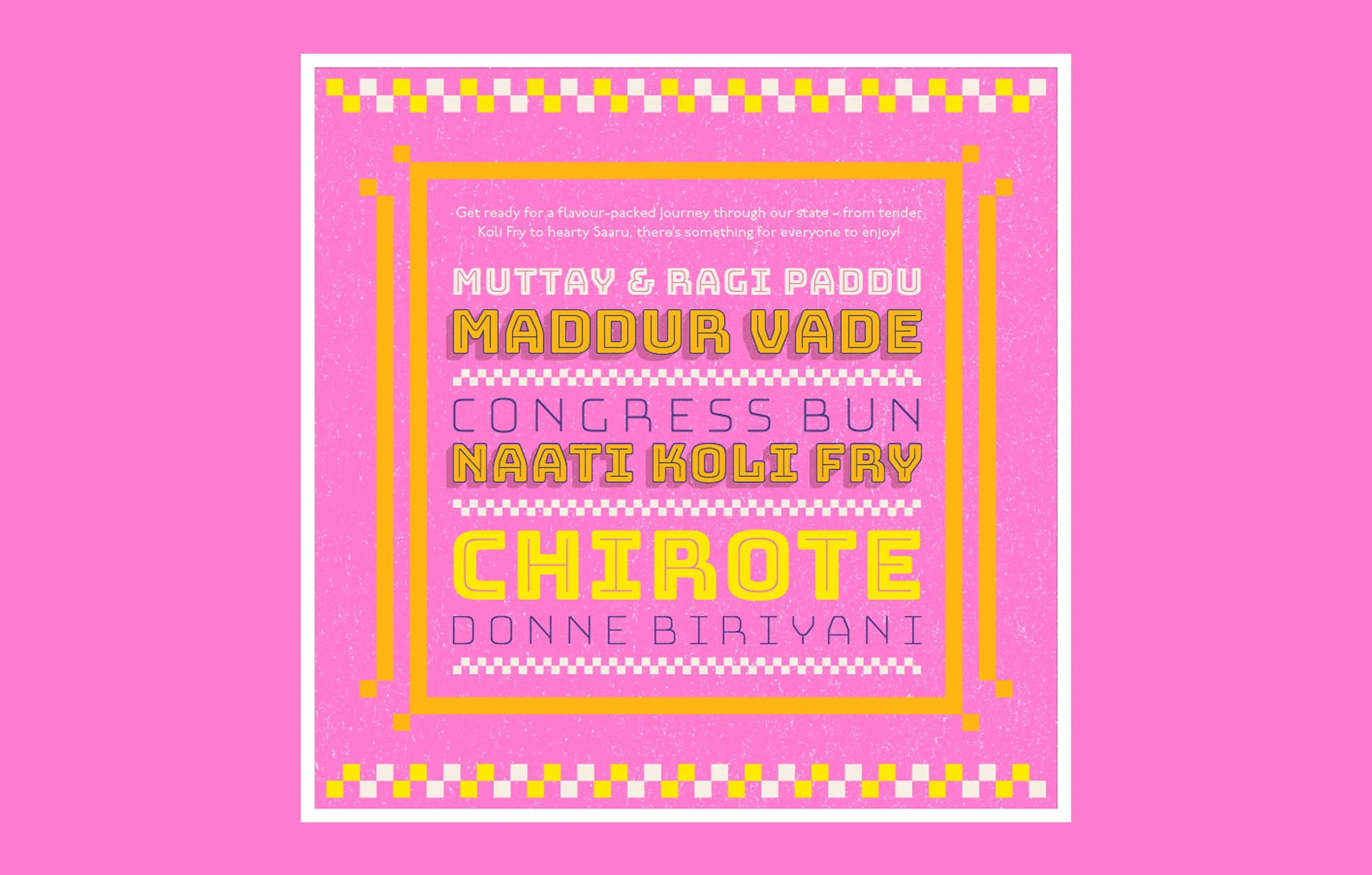 Every year, Biergarten Brewery & Kitchen celebrates the Karnataka Food Festival – a tribute to a state that’s a mosaic of accents, kitchens, playlists, and Friday-night pints. This year’s identity draws from the warmth of the Kowdhi quilt of North Karnataka; square patchworks of reused fabrics stitched into rhythmic geometry, paired with colours inspired by vibrant risograph inks and traditional quilts.