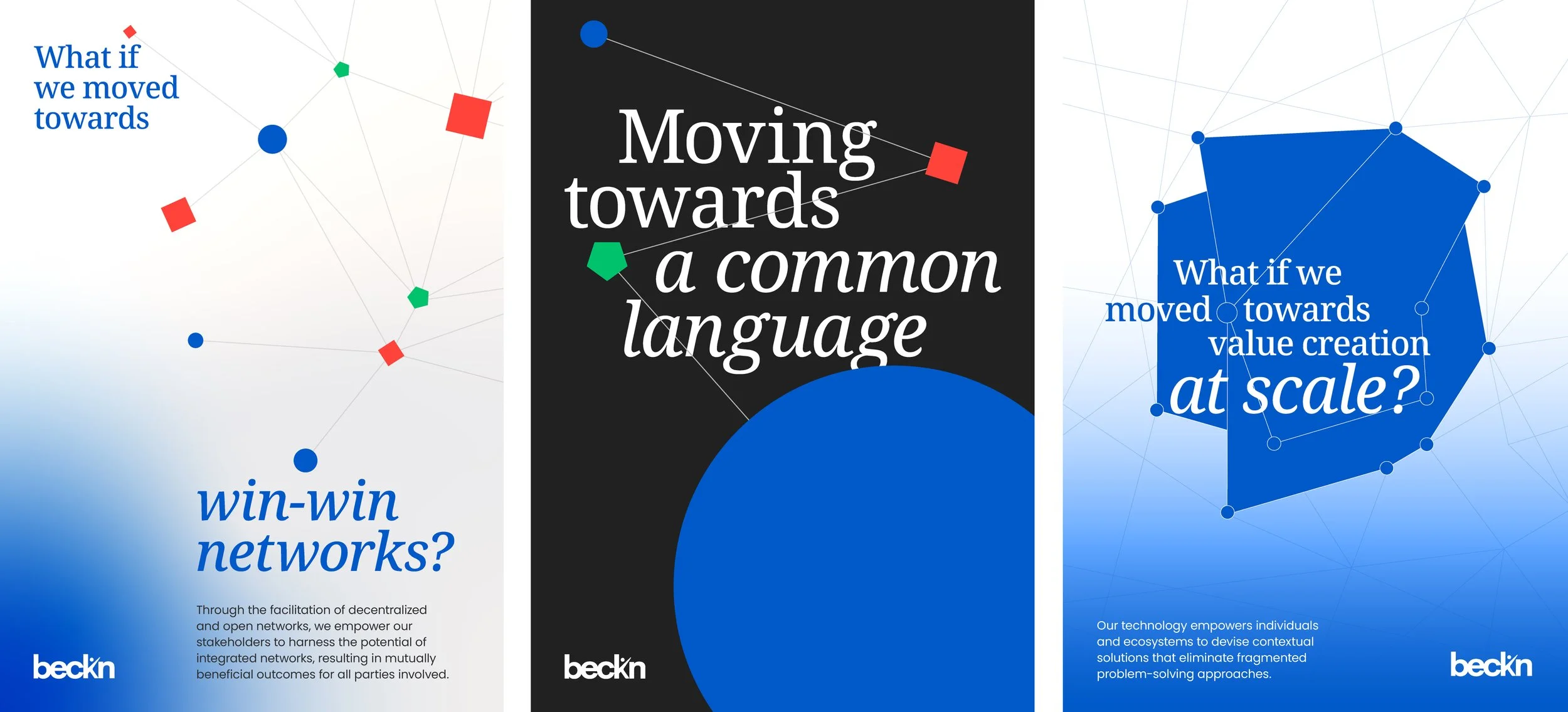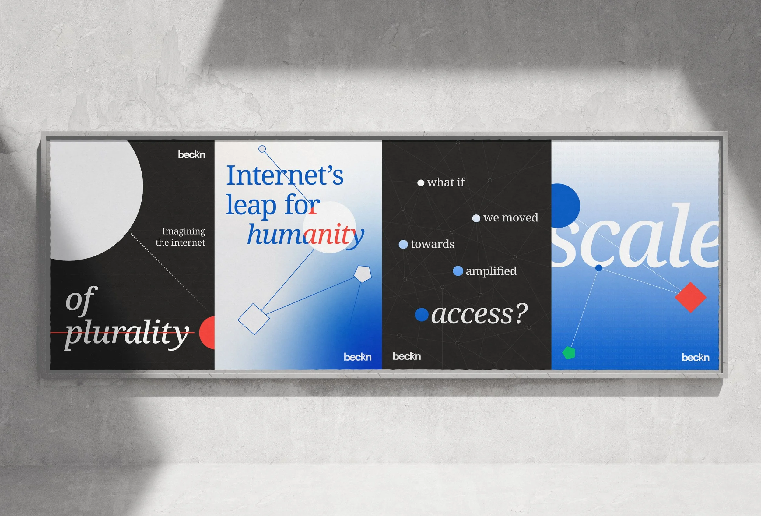 The world carries interconnectedness in its pocket, yet still functions in silos. The internet was meant to be free, open, and accessible – but does that ideal still hold? beckn is a universal protocol that reimagines the internet by enabling open, decentralised digital ecosystems. After building beckn’s identity in 2020, we came back to evolve the brand language – moving from a quiet, minimal presence to one that felt bold, empowering, and counter-intuitive. Rooted in the metaphor of a rhizome, a non-linear network, the new identity reflects how the internet truly works. This came alive through the following elements –